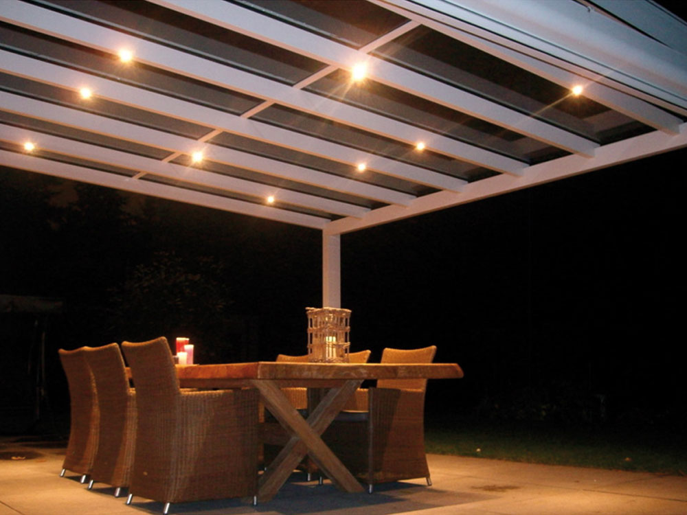 De LED-verlichting is energiezuinig, heeft een lange levensduur en zorgt voor extra sfeer onder uw veranda. U kunt zelfs, zonder u zorgen te maken over de energierekening, gemakkelijk de hele nacht het licht onder uw carport of overkapping laten branden.
